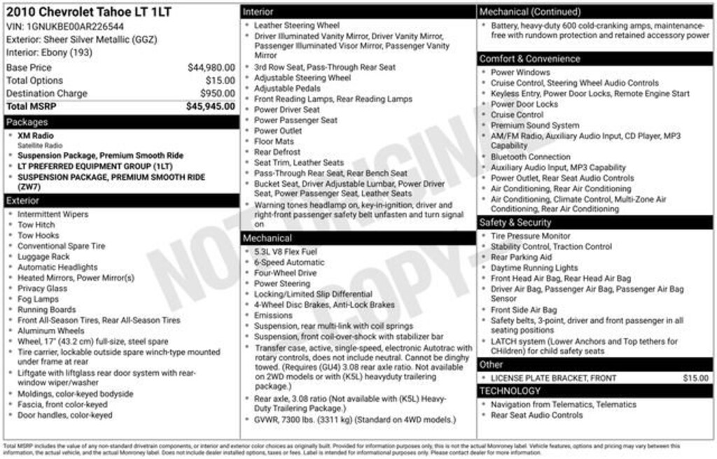 - Engine: 5.3L, V-8, Flex Fuel, SFI, V-8